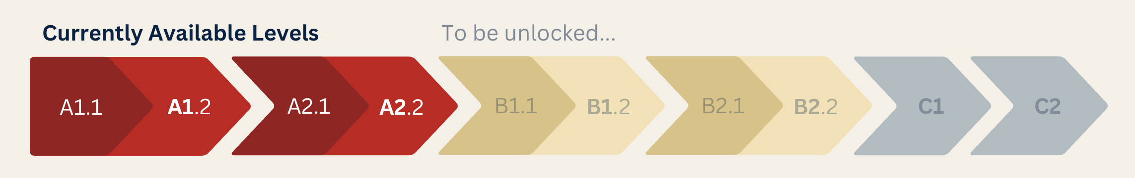 To support your success, I designed more specific levels with clearer, achievable goals, giving you greater control over your learning progress. At the same time, the courses are shorter while still meeting the European Union’s recommended guidelines for learning hours.